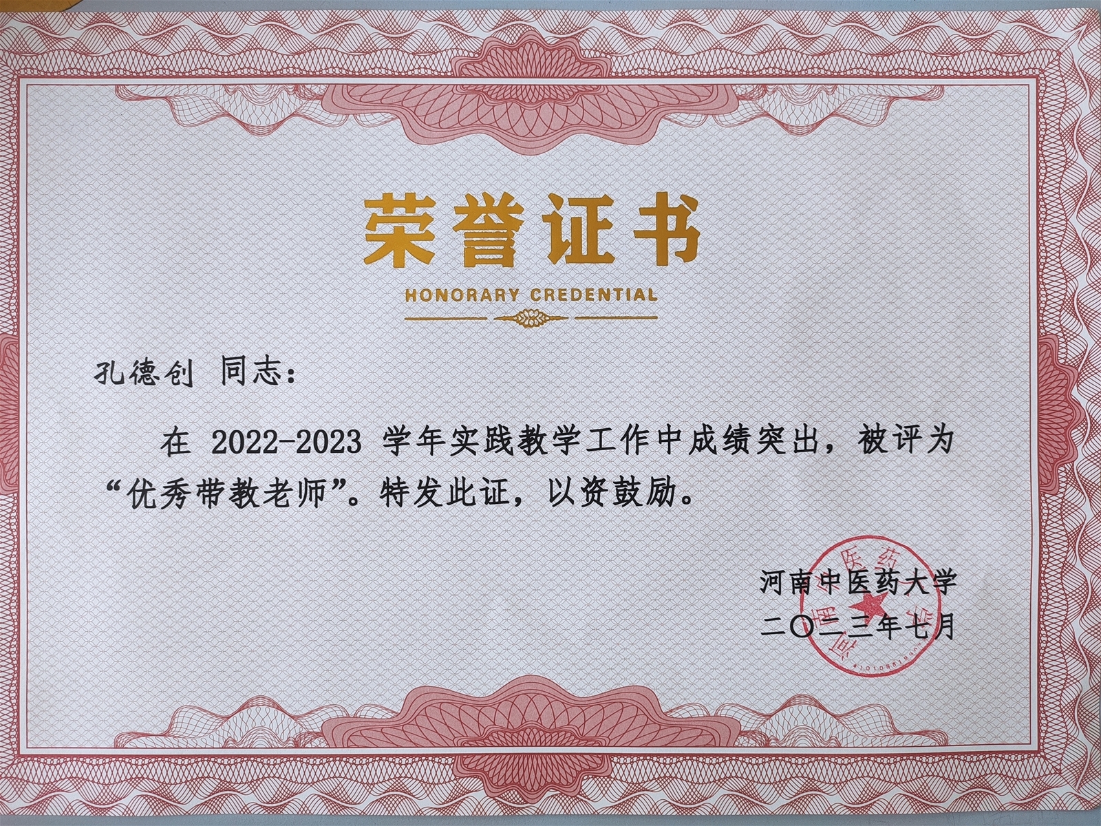 此次榮譽的獲得既是對孔主任堅守初心的肯定,也彰顯了河南中儉檢測技術(shù)有限公司對河南中醫(yī)藥大學(xué)教學(xué)工作的支持。