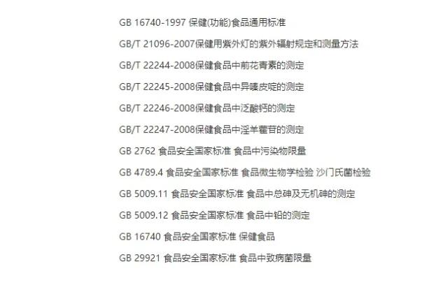 檢測產品 保健食品:茶、酒、蜂制品、飲品、湯品、鮮汁、藥膳、阿膠、鈣片、高鈣片等 保健藥品:減肥藥、塑身藥、保健化妝品、保健用品等 檢測項目 功效成分: 黃酮類:花青素、茶多酚、大豆異黃酮、蘆丁、黃芩苷、葛根素、兒茶素、銀杏素、補骨脂乙素、陳皮素、淫羊藿黃酮等